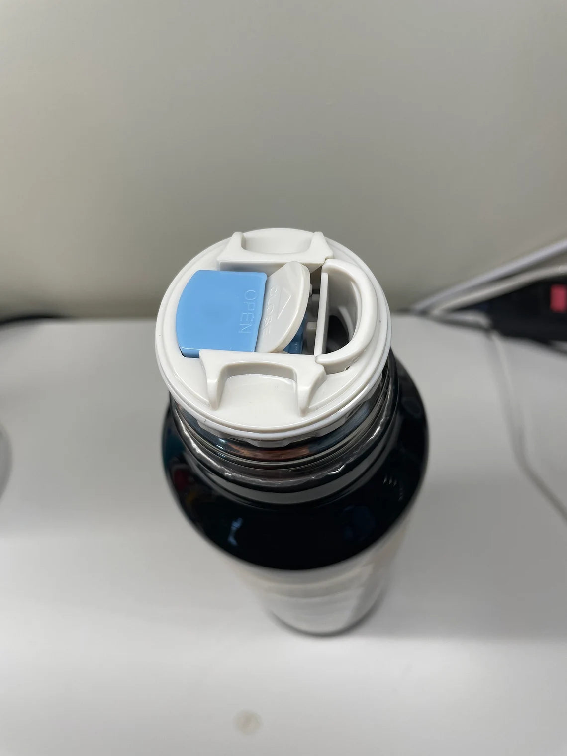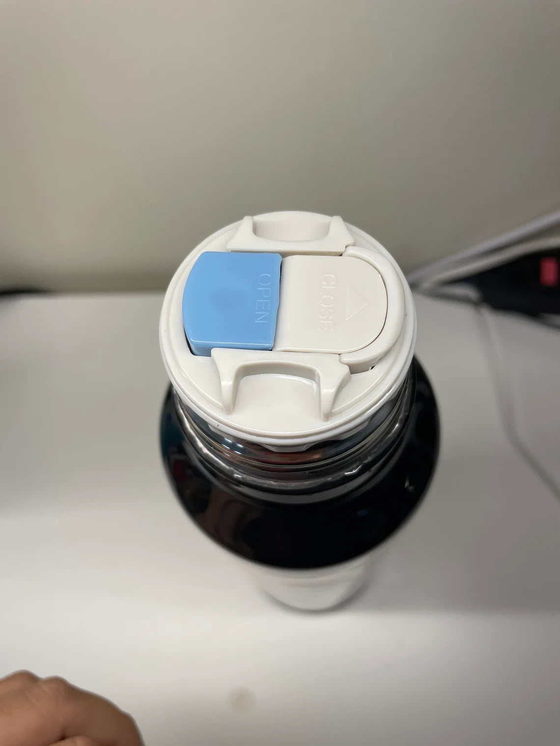 This is a stainless steel tumbler/thermos that is perfect for both hot and cold beverages and is known for holding temperature for 8+ hours. The tip of the bullet twists off which reveals the lid that can be popped open or closed to drink, and it also twists off to fill.
