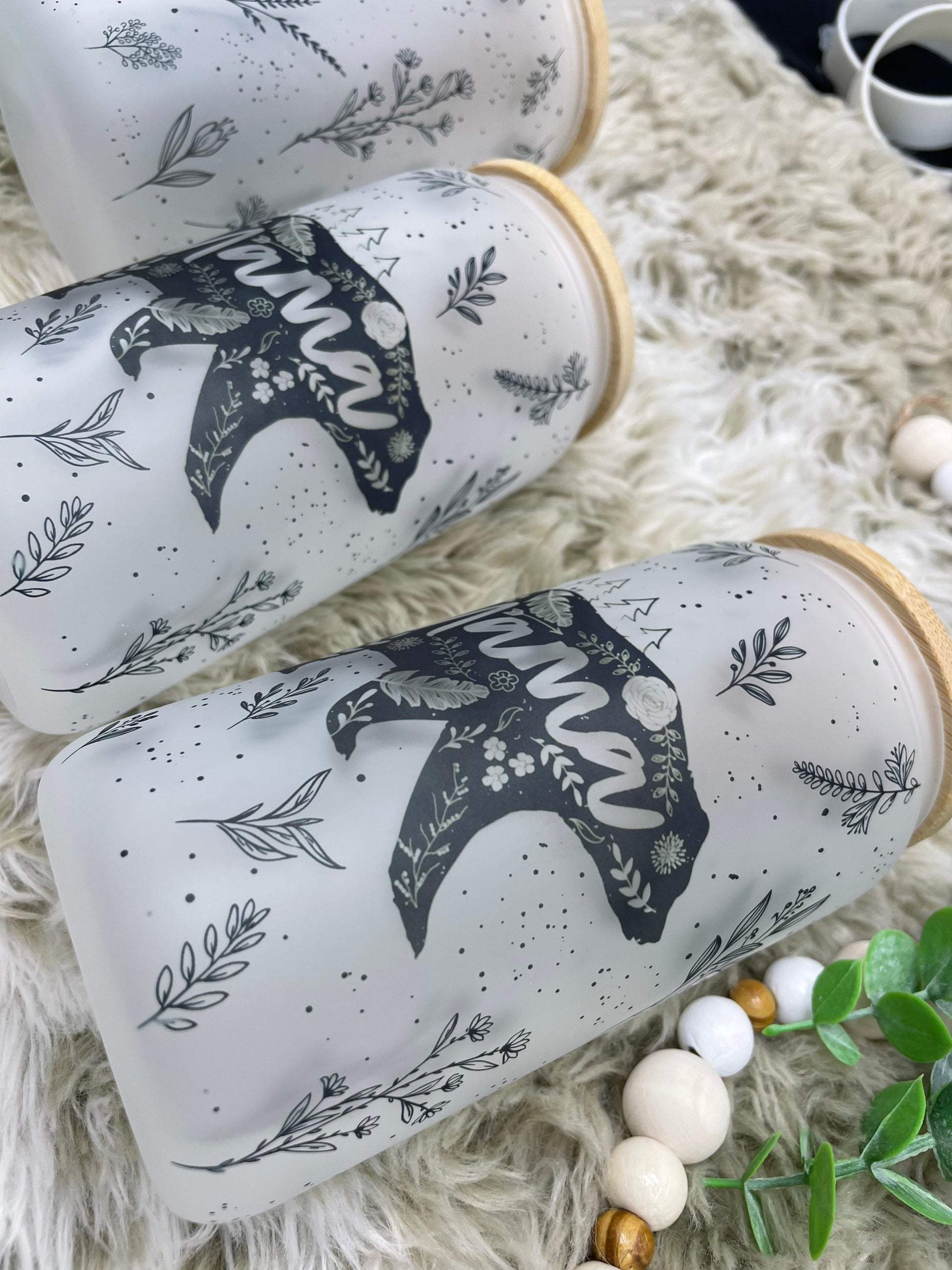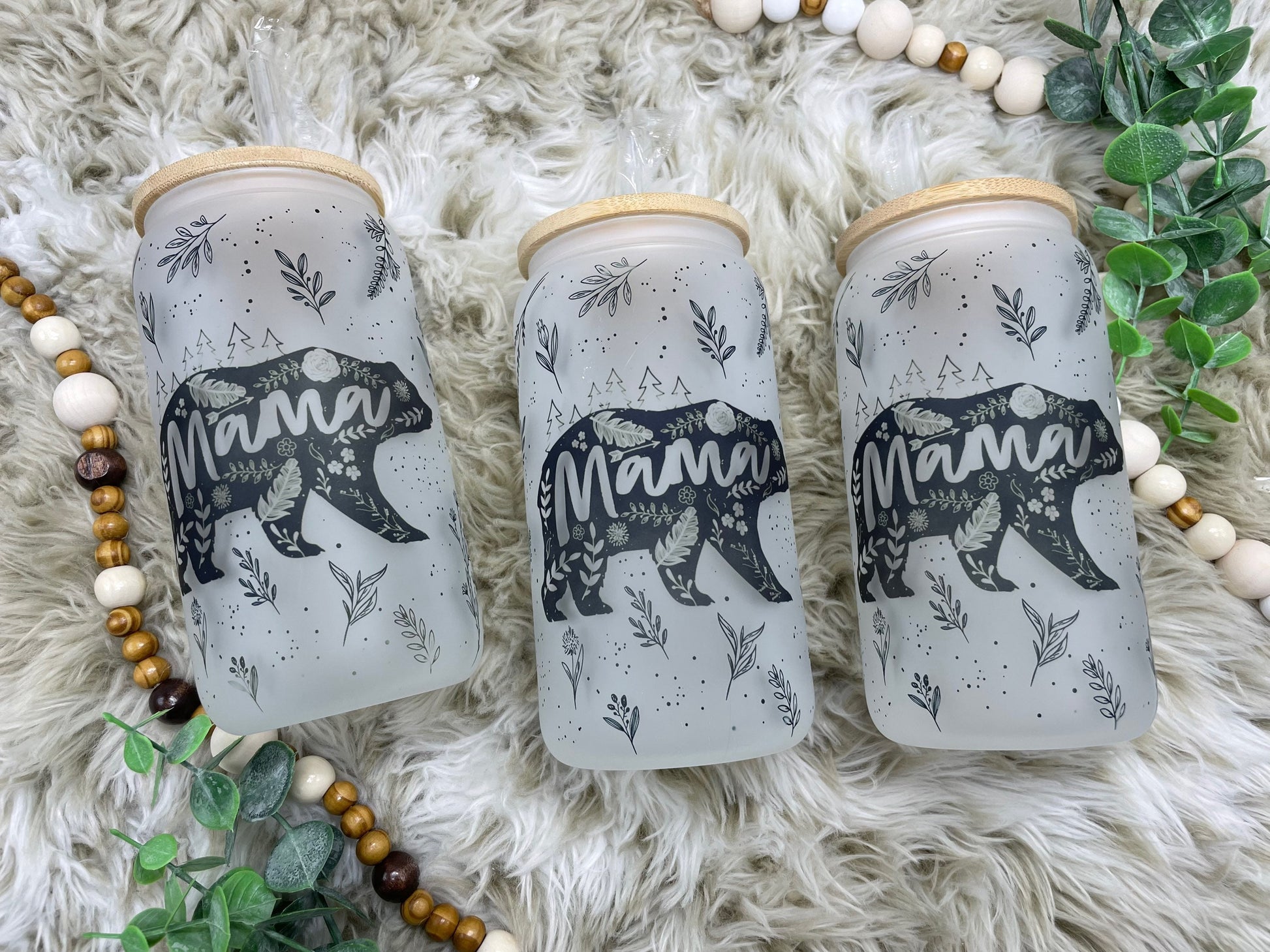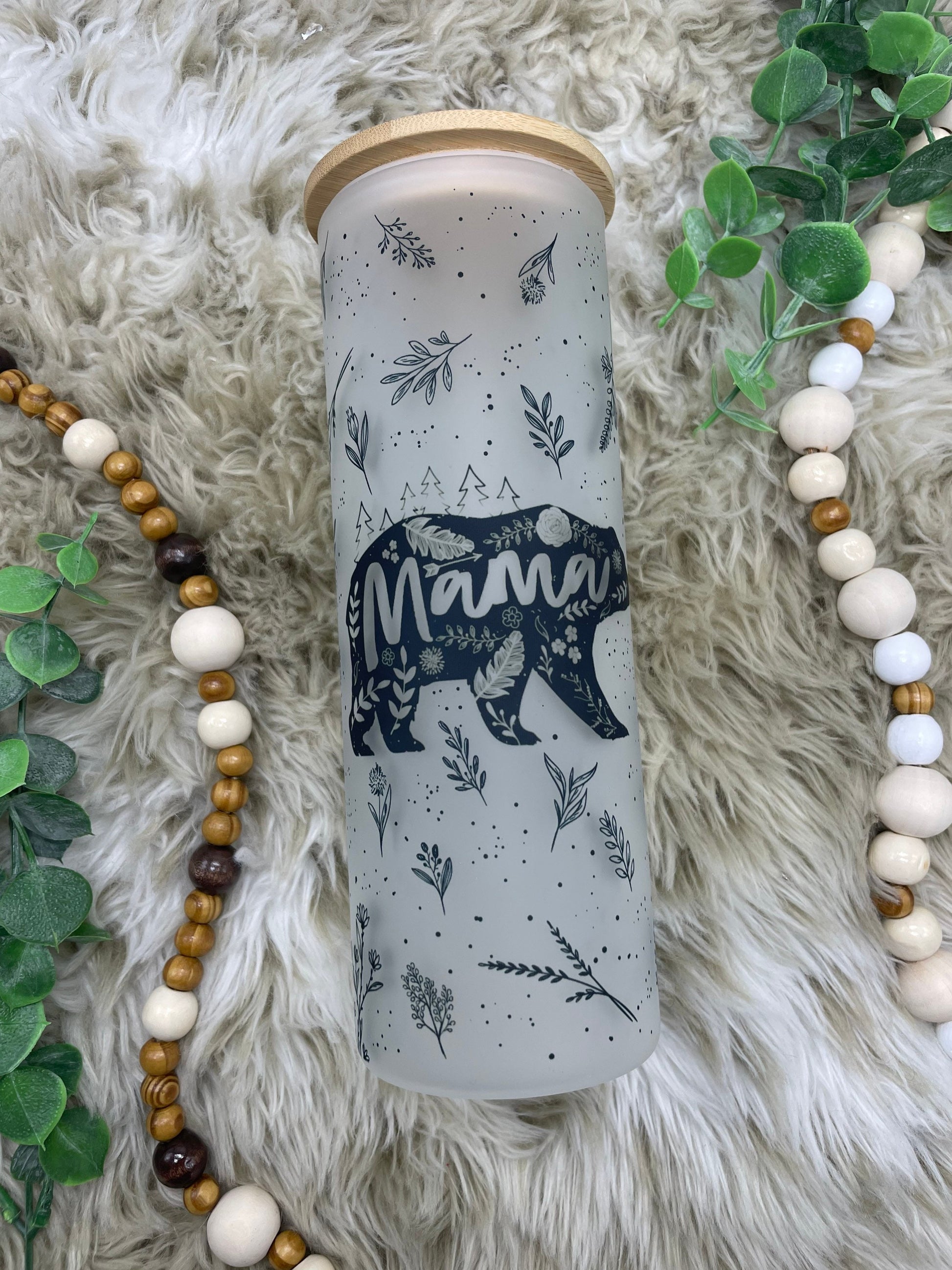 Floral Mama Bear Frosted Glass Can