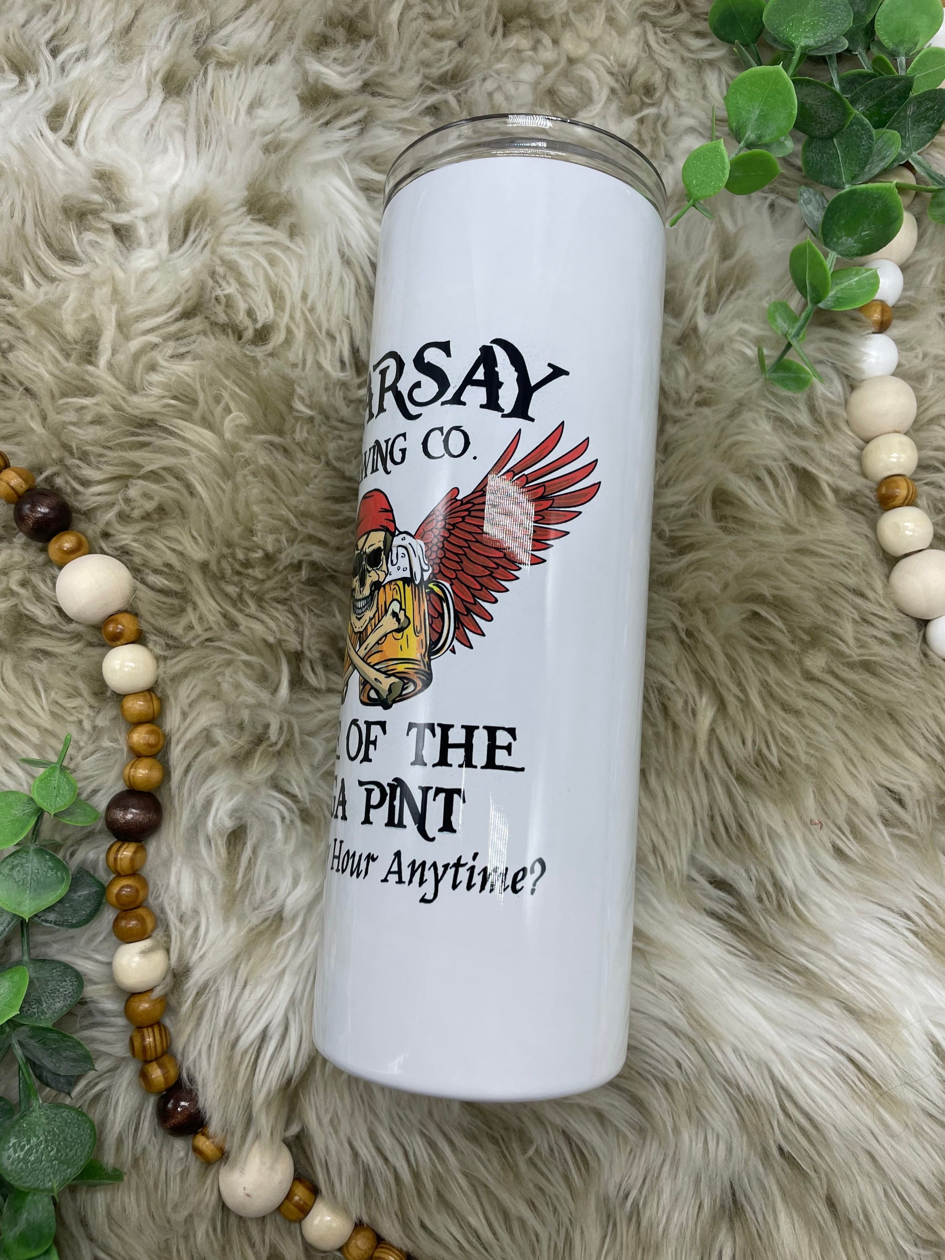 This can also be made on a white 20 oz skinny, strait formed, tumbler. Be sure to select which one you would like at checkout!