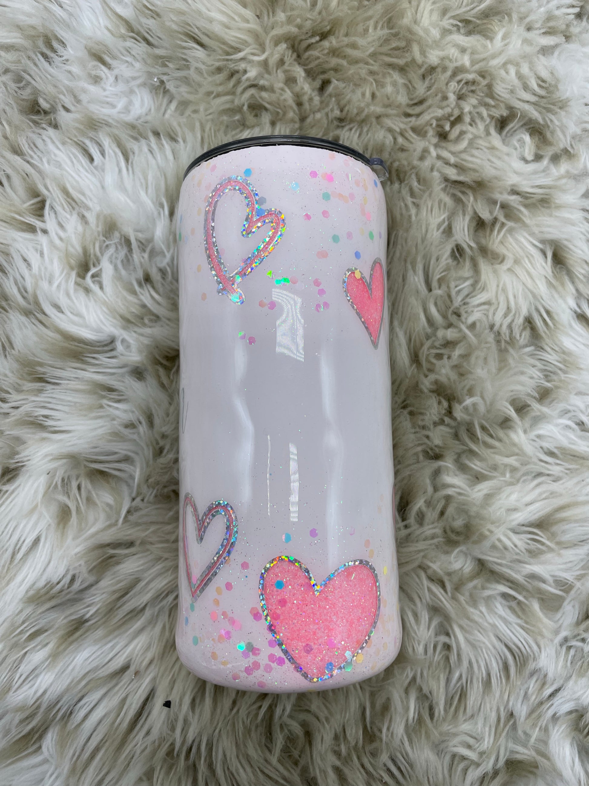 This is available in a 20 ounce or 30 ounce size, skinny/strait formed tumbler. Made with glitter and sealed with a high quality countertop epoxy gives it a glass like finish. Choose your color of peekaboo at checkout! Add a note with purchase or send an email with the name you'd like it customized with.
